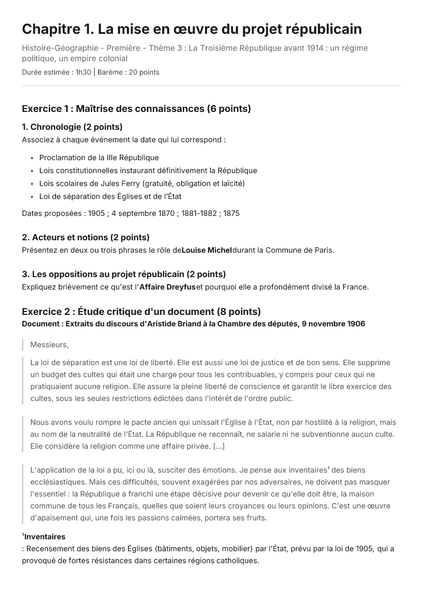 Dans un développement construit et argumenté, montrez comment la Troisième République parvient, entre 1870 et 1914, à construire et enraciner une culture républicaine en France, tout en faisant face à de vives oppositions.