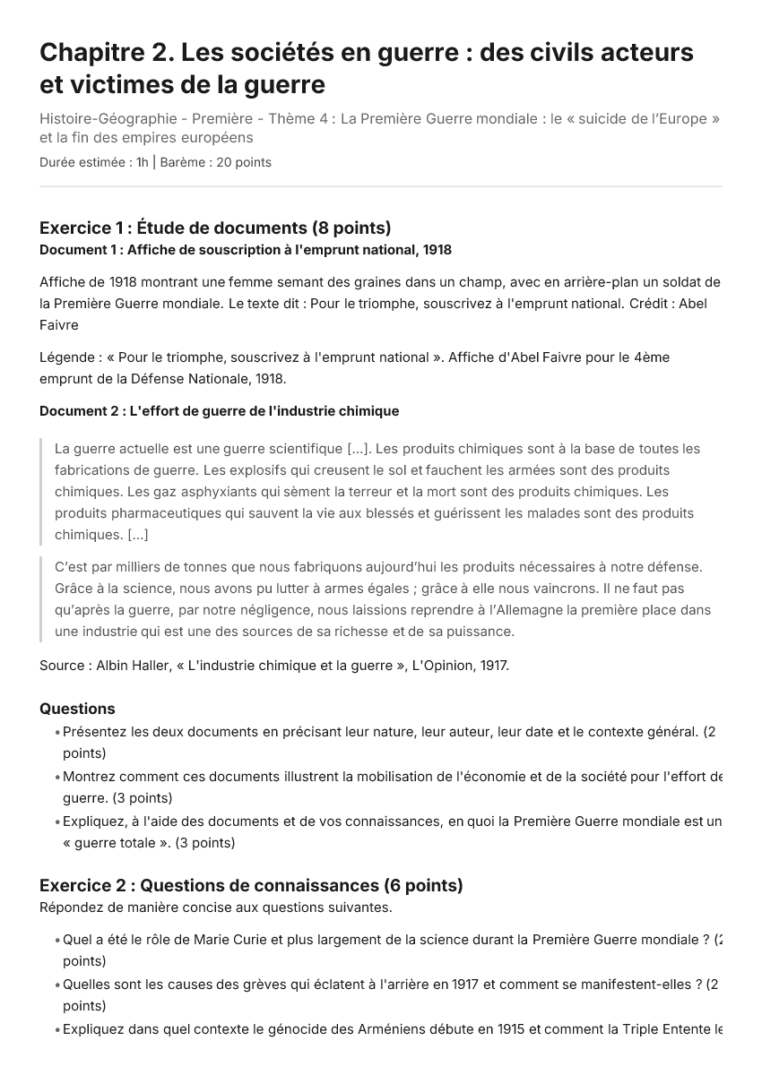 Dans un développement construit d'une quinzaine de lignes, vous montrerez comment les civils, et particulièrement les femmes, sont devenus des acteurs majeurs du conflit tout en subissant de profondes violences, transformant durablement la société.