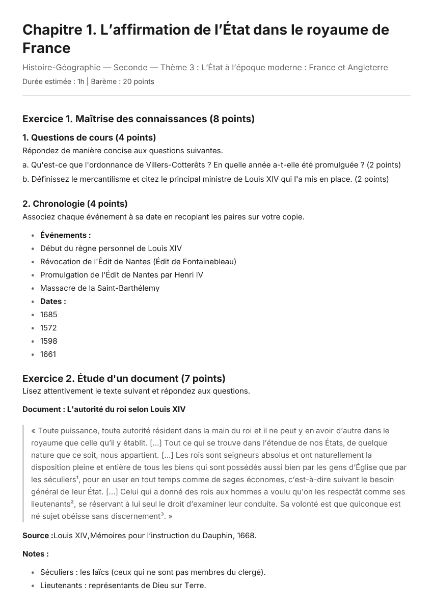 b. Définissez le mercantilisme et citez le principal ministre de Louis XIV qui l'a mis en place. (2 points)
