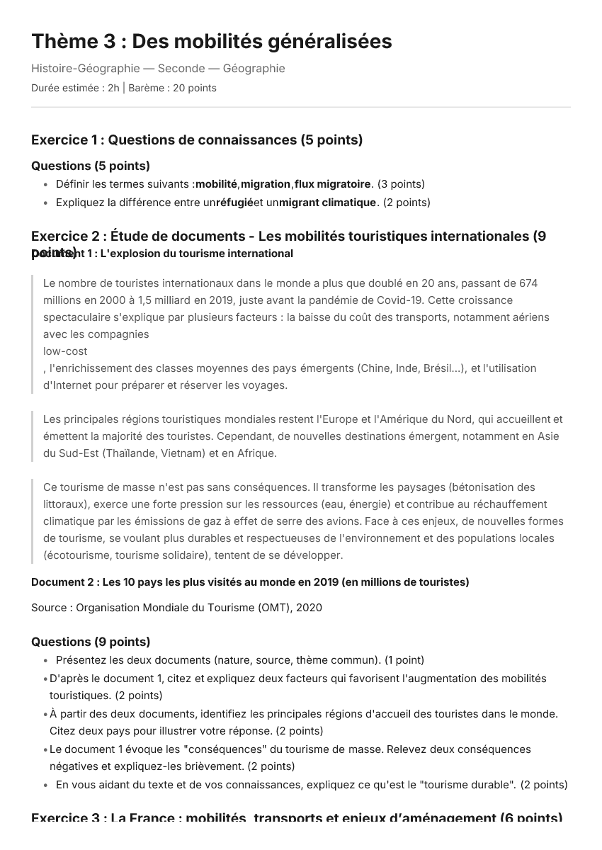 Exercice 2 : Étude de documents - Les mobilités touristiques internationales (9 points)