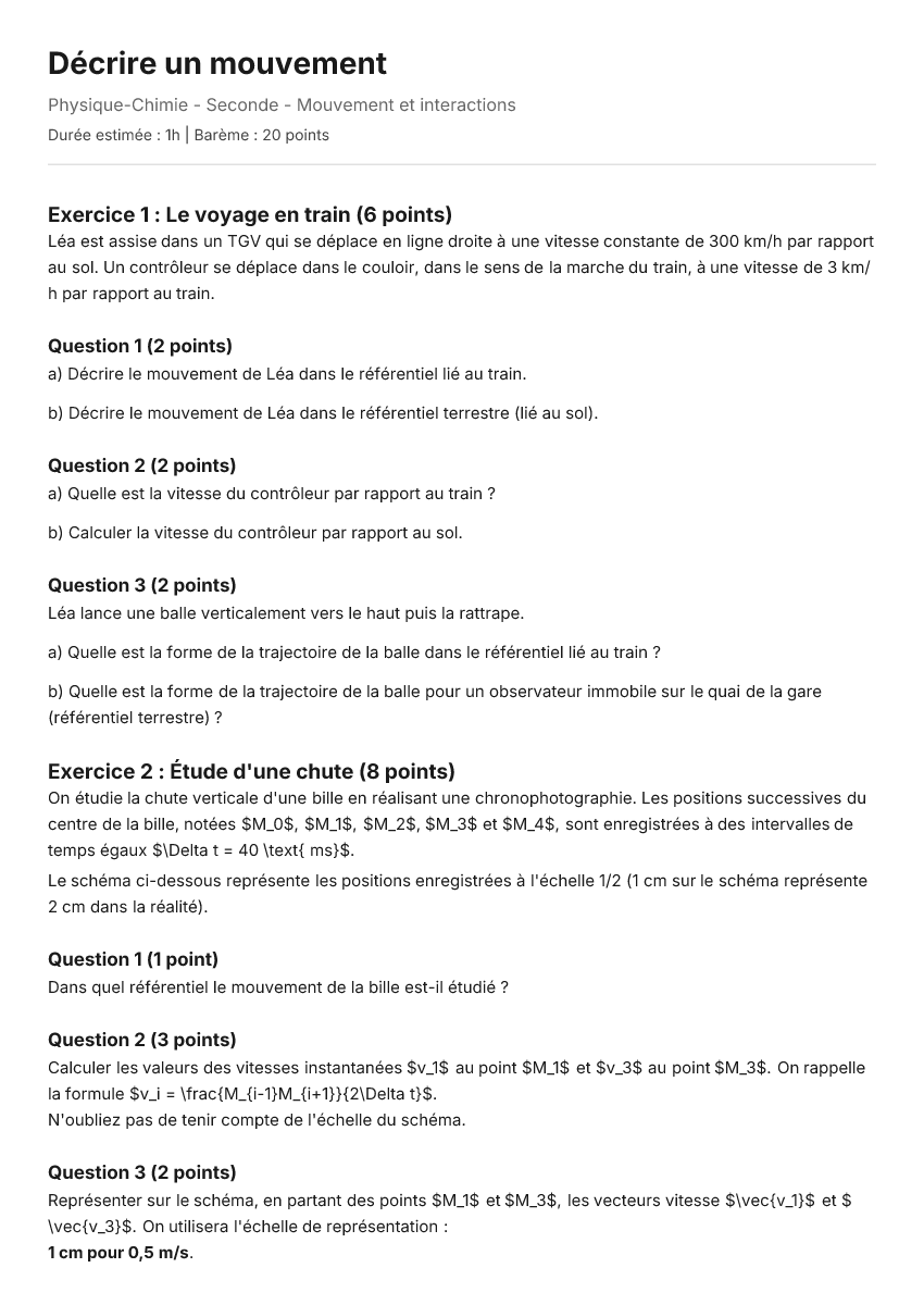 a) Décrire le mouvement de Léa dans le référentiel lié au train.