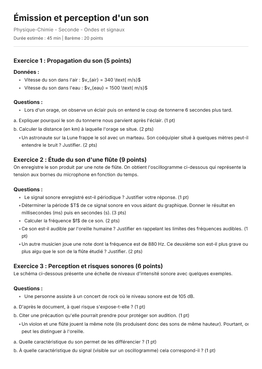 3. Citer deux conséquences possibles sur la santé d'une exposition sonore trop intense ou prolongée. (2 pts)