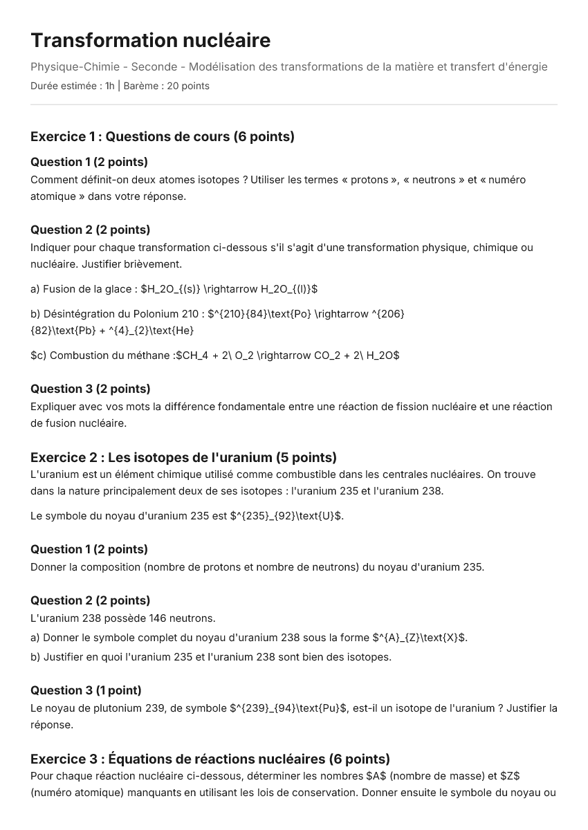 Exercice 3 : Équations de réactions nucléaires (6 points)